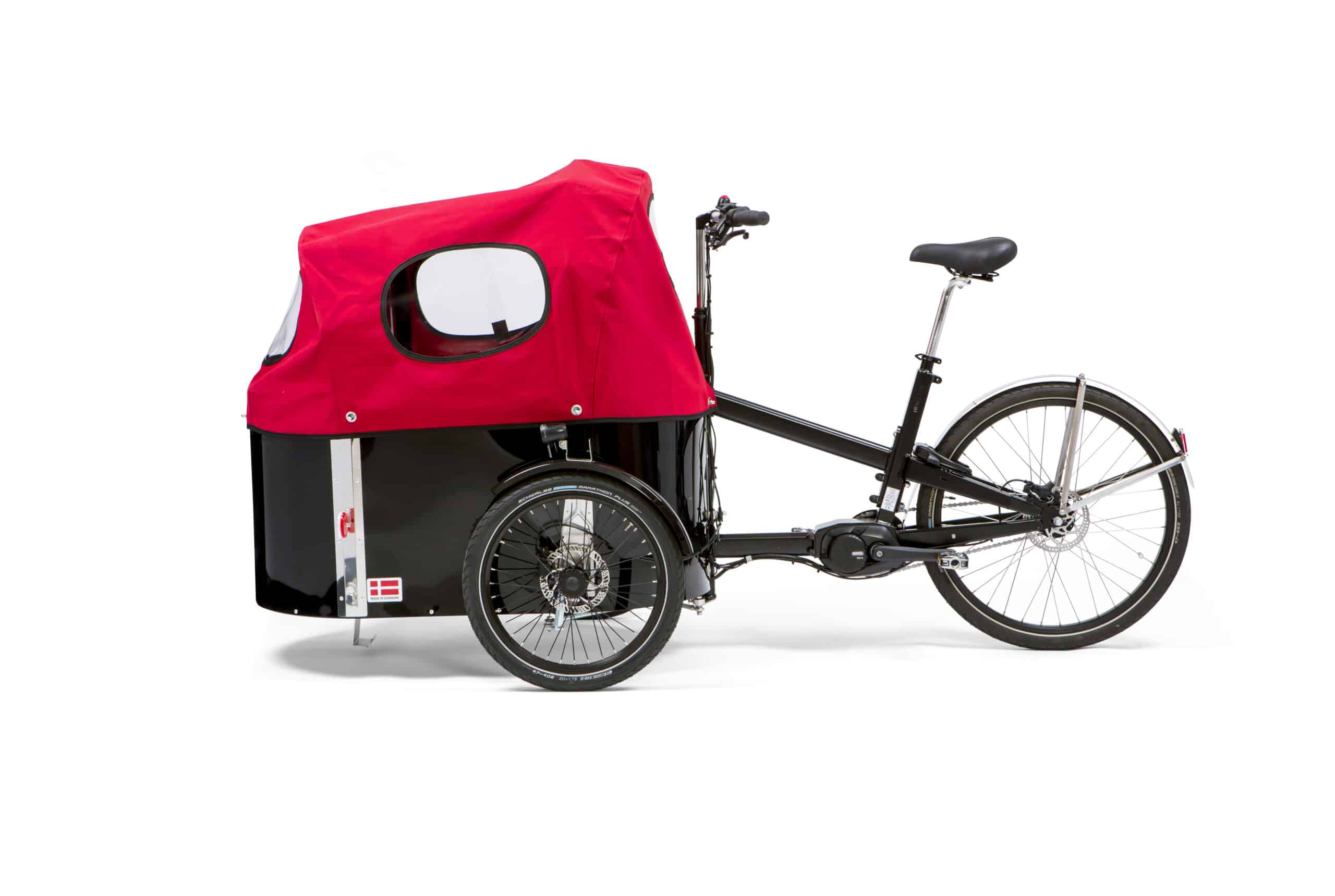 Den lave tyngdepunktet gjør sykkelen stabil og trygg, selv når lastekassen er full. Samtidig gir den brede konstruksjonen en komfortabel opplevelse for både sjåfør og passasjerer.